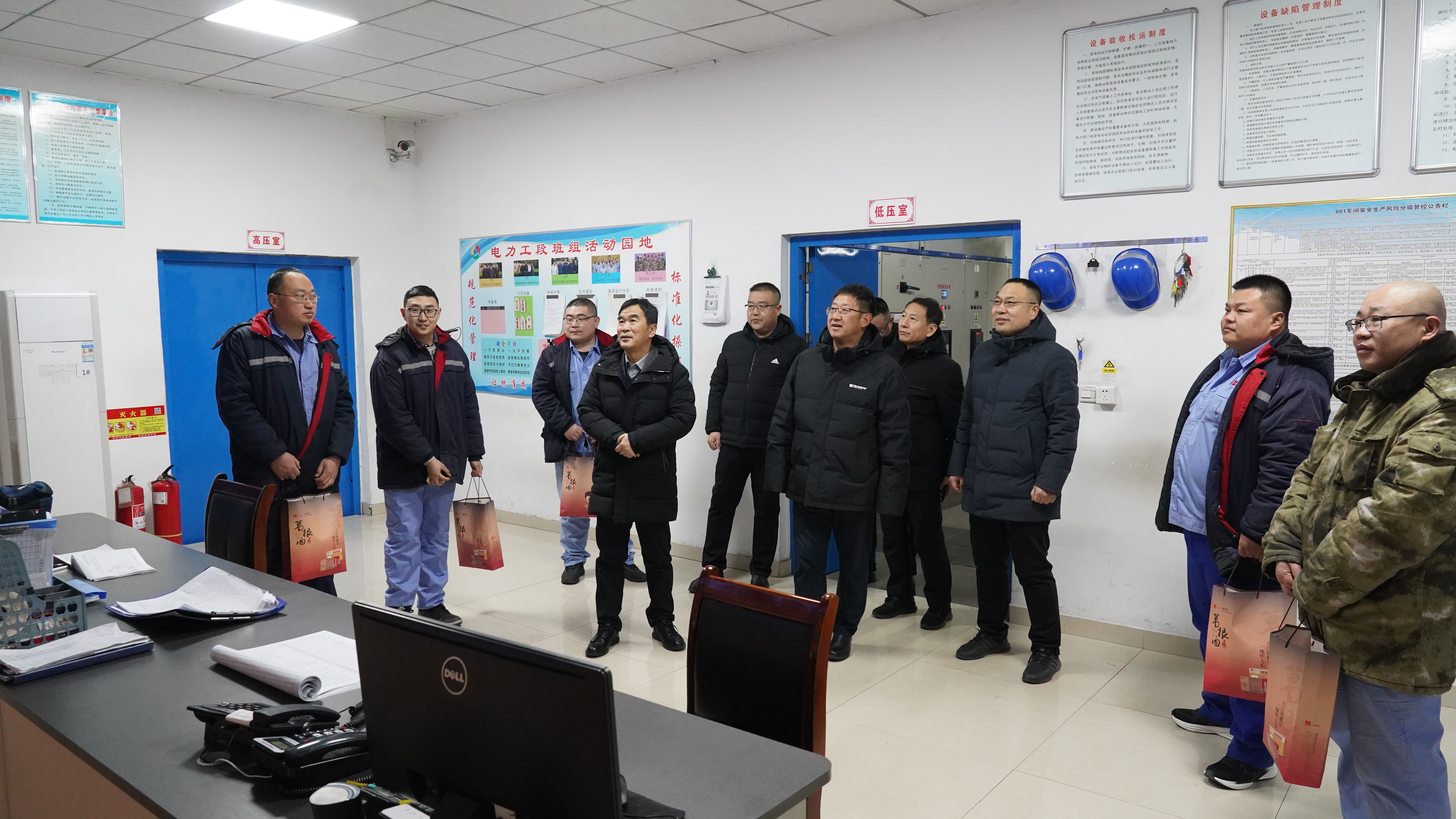 ? 每到一處,領(lǐng)導(dǎo)們都與值班員工親切握手、熱情交談,仔細(xì)詢問大家的工作情況和生活需求,對他們在節(jié)日期間舍小家為大家,堅(jiān)守崗位、默默奉獻(xiàn)的精神給予高度贊揚(yáng)和誠摯感謝。苗董事長代表公司領(lǐng)導(dǎo)班子,向全體值班員工致以新春的問候和美好的祝愿,同時(shí)叮囑大家在工作中一定要注意安全,合理安排休息時(shí)間,確保度過一個(gè)平安、歡樂、祥和的春節(jié)。