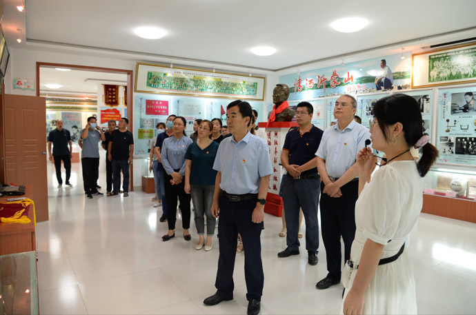 在李振華事跡展廳,通過(guò)講解員生動(dòng)的講解和圖片、實(shí)物展示,以及李振華事跡專題片的觀看,李振華校長(zhǎng)崇高的思想境界、高尚的道德情操、嚴(yán)謹(jǐn)?shù)墓ぷ髯黠L(fēng)和對(duì)教育事業(yè)無(wú)私的大愛,感動(dòng)著現(xiàn)場(chǎng)的每一位黨員。學(xué)習(xí)完畢,在展廳門口,黨員們舉起右拳,面向鮮紅的黨旗,鏗鏘有力地一起重溫入黨誓詞,重溫自己的入黨初心。
